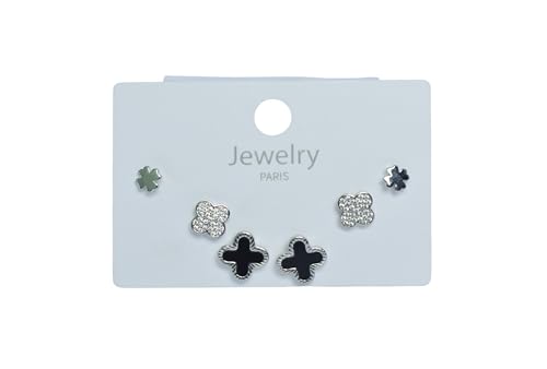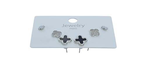 Generic - طقم اقراط بتصميم زهرة لامعة للنساء، 3 ازواج - فضي