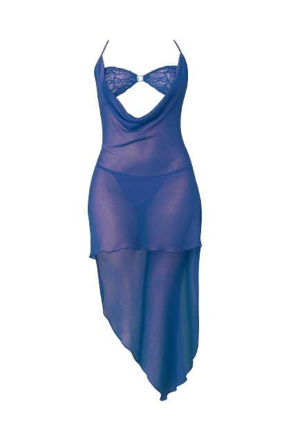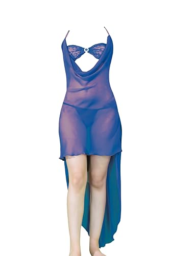 Dadoush - Women's Short Dress Unique Design Increase Your Look - Lingerie Nightgown Short Front and High Low - Chiffon Backed Lace Open Back