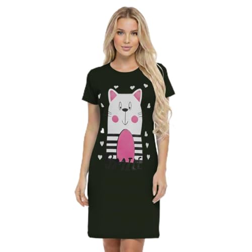 Generic - Women's Short Sleeve Cotton Nightgown Smiling Cat with Hearts One Size Up to 85K