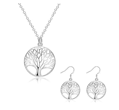 Other - طقم سلسله و اقراط شجره فضى للنساء فضي معدن