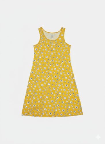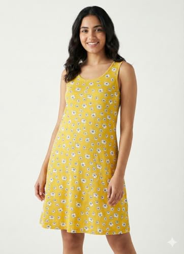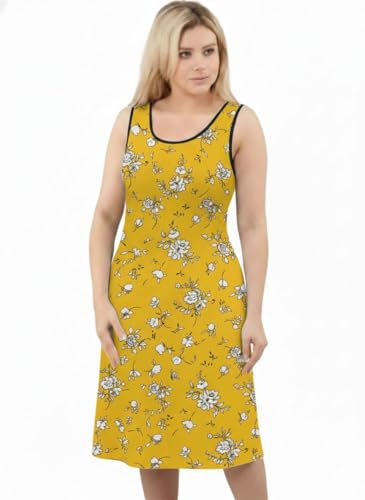 Generic - Women's Sleeveless Yellow White Floral Print Dress with Black Trim Midi