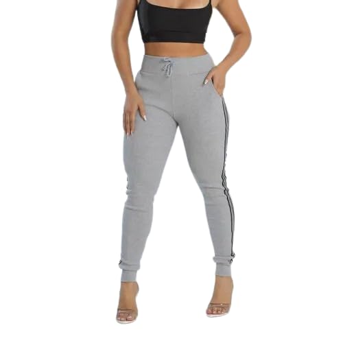 Generic - Women’s Slim-Fit Side-Stripe Joggers | High-Waisted Athletic Track Pants in Heather Gray
