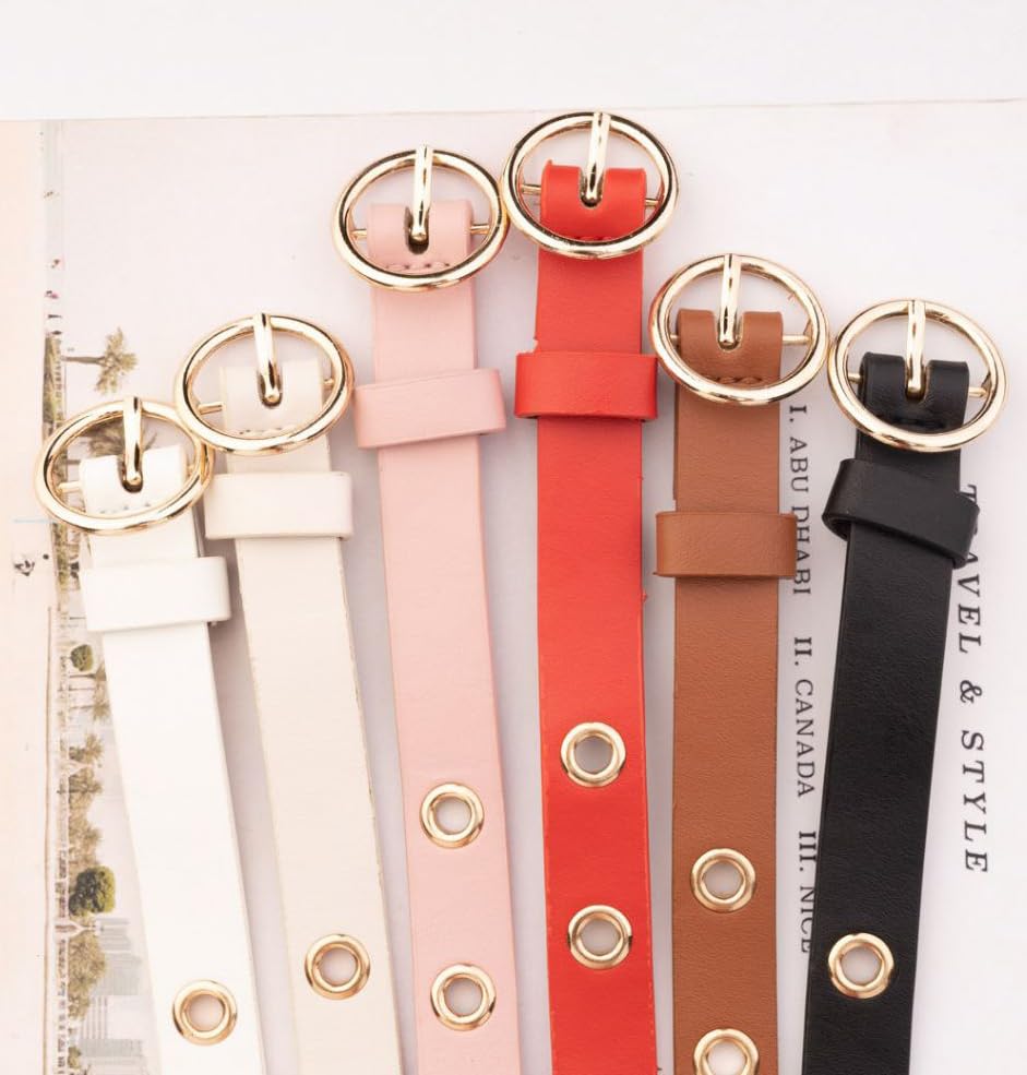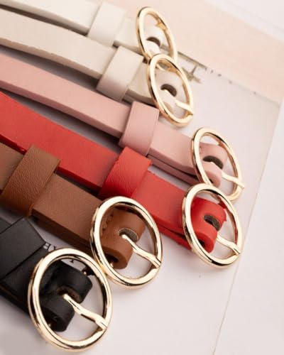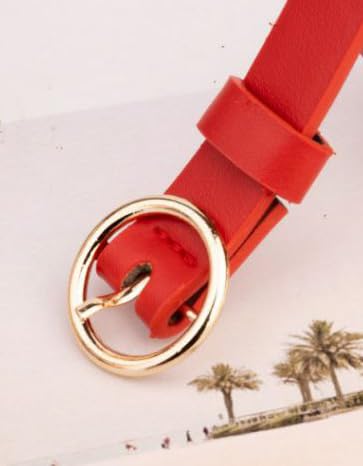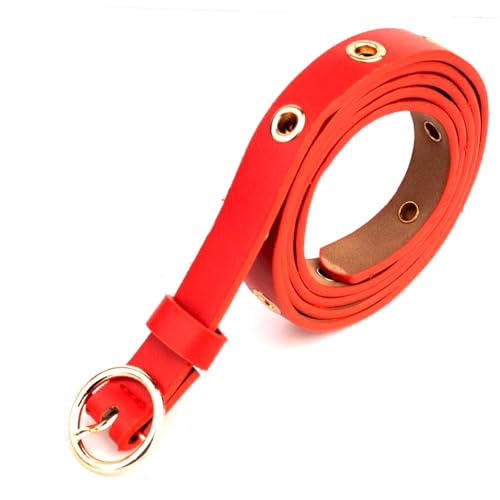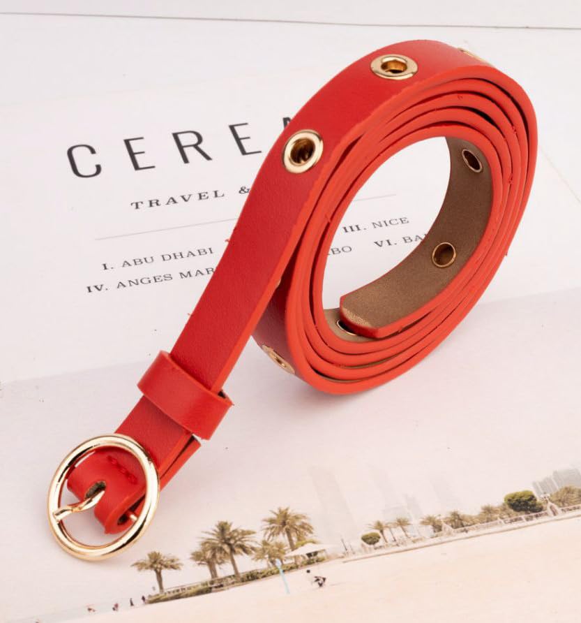 Generic - حزام جلد حريمي رفيع سليم مع ابزيم ذهبي أحمر 1033 - 05 للنساء
