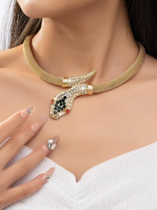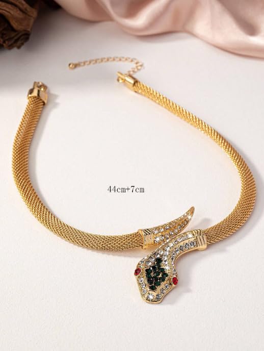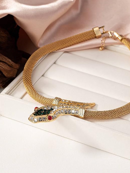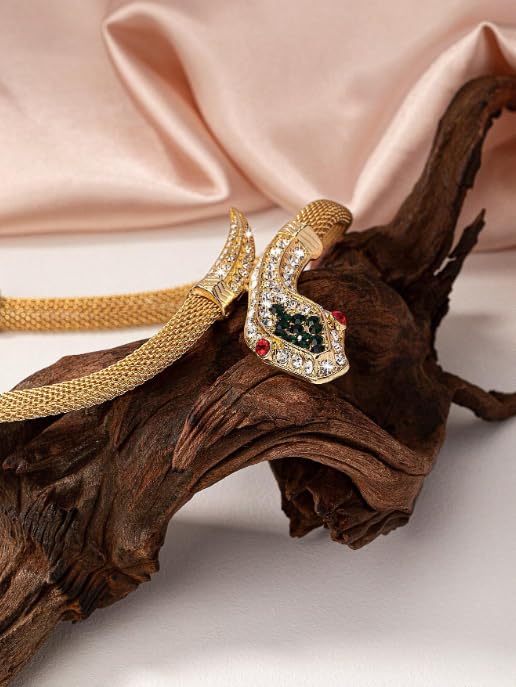 Generic - سلسلة حريمي بتصميم ثعبان مرصع – لون ذهبي لامع للمناسبات والخروجات