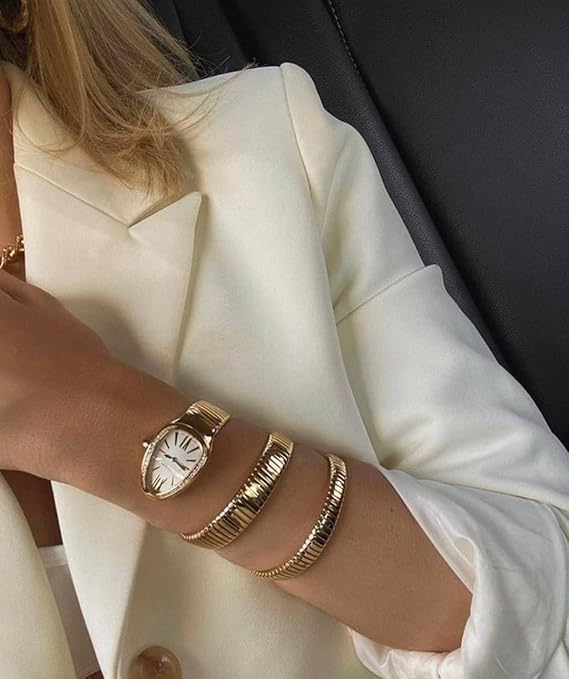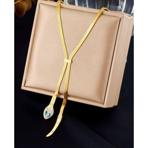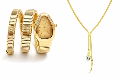Generic - Women's Snake Wrap Watch with Matching Necklace - Gold Jewelry Set with Diamonds and Faux Emerald - "Classic Luxury - (Gold) Evening Dress Up Luxury Women Gifts Wrap Bracelet Watch