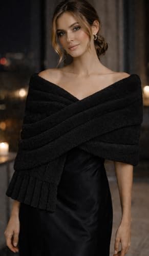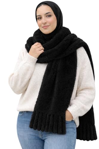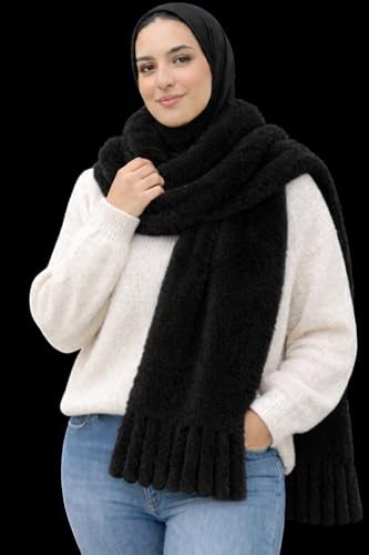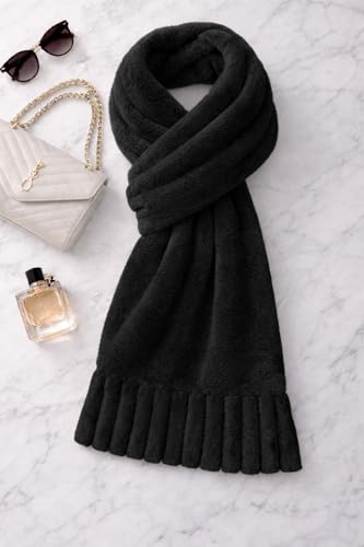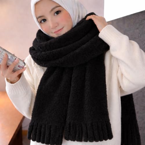 Generic - وشاح مخملي ناعم للنساء، اسود، لف طويل للتدفئة في الشتاء مع شراشيب، نسيج صوف مريح