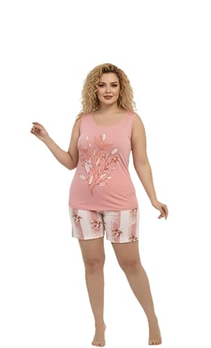 Generic - Women's Summer Comfy Pajama Set 2 Piece Pink Floral Pattern Plus Size