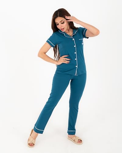 Generic - Women's Summer Pajamas 100% Cotton 2 Piece Set Genzary Color Multiple Sizes Perfect for Rest, Reception and Sleep for Summer Atmosphere Classic Design Fits All Tastes and Sizes from M to 3XL