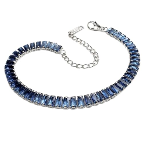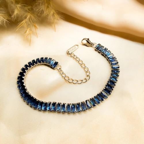 Generic - سوار تنس نسائي فاخر مرصع بأحجار الزركونيا المكعبة قصة باجيت، سلسلة يد مطلية بالفضة قابلة للتعديل بمشبك لوبستر متين، مجوهرات كريستالية عصرية مثالية للهدايا والمناسبات والحفلات (أزرق)