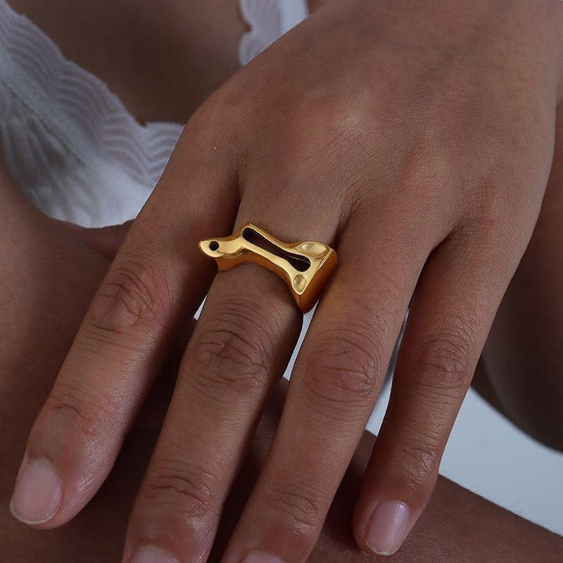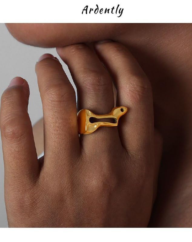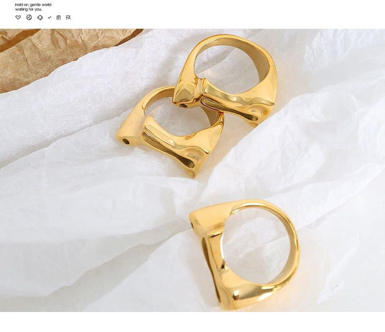 Generic - Women's Thick stainless steel Liquid Texture Rings, Adjustable, Open Knuckle Rings, Simple Irregular Geometric Metal Rings, Jewelry Accessories