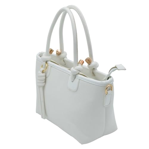 شنطة يد كبيرة توت للنساء من الجلد المزخرف، قطع معدنية ذهبية، جيب بسحاب مزدوج، شنطة كتف مزينة بشراشيب