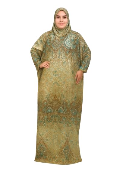 Generic - فستان صلاة تقليدي مزركش للنساء، لون اخضر مخضر وذهبي متدرج، عباية بغطاء للراس واكمام طويلة، مقاس كبير