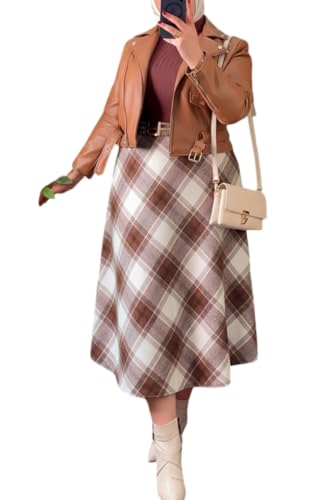 Generic - طقم من قطعتين للنساء، جيبة متوسطة الطول منقوشة ايه لاين مع حزام وجاكيت من الجلد الصناعي