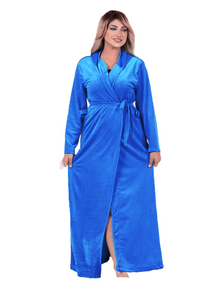 SONDOS FOR HOMEWEAR - Women's Velvet Robe Dress, Long Sleeves, Knee-Length Slit, One Size up to 90 kg, SONDOS FOR HOMEWEAR