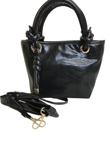Generic - حقيبة يد كلاسيكية نسائية، جلد صناعي أسود، حجم صغير، حمالة كتف قابلة للتعديل، مع سحاب ذهبي، تصميم أنيق للاستخدام اليومي