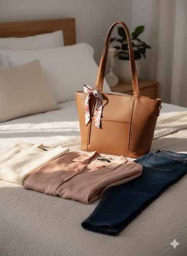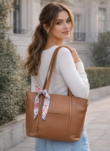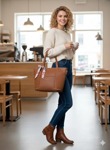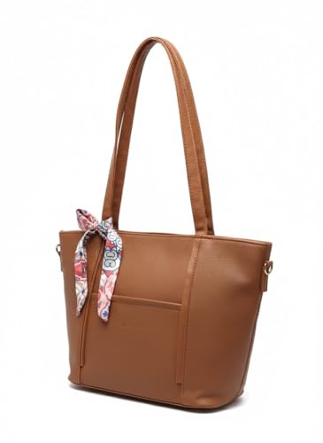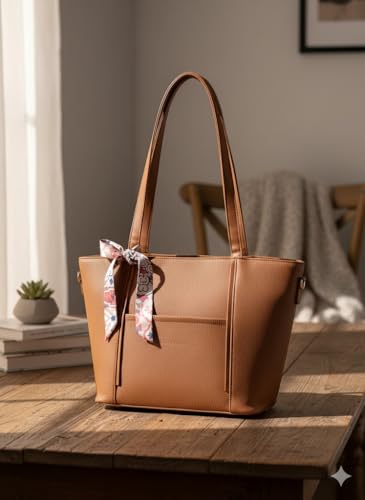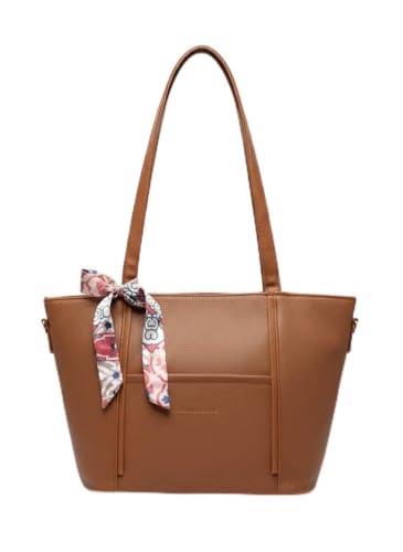 حقيبة يد نسائية توت كلاسيكية من الجلد مع وشاح حريري، حقيبة كتف واسعة للعمل والتسوق، متوفرة باللون الأسود والبني