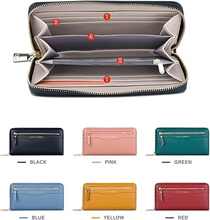 - FASHION DESIGN: Classic elegant wallet with round zipper, available in six attractive colors including black, pink, green, blue, yellow, red