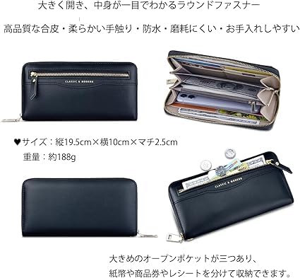 - Internal organization: multiple card pockets, cash and coins, with functional design that makes it easy to access contents