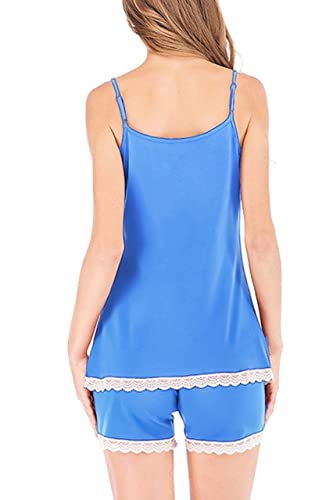 Generic - بيجامة شورت نسائى أزرق سماوى قطن بفستونة ابيض