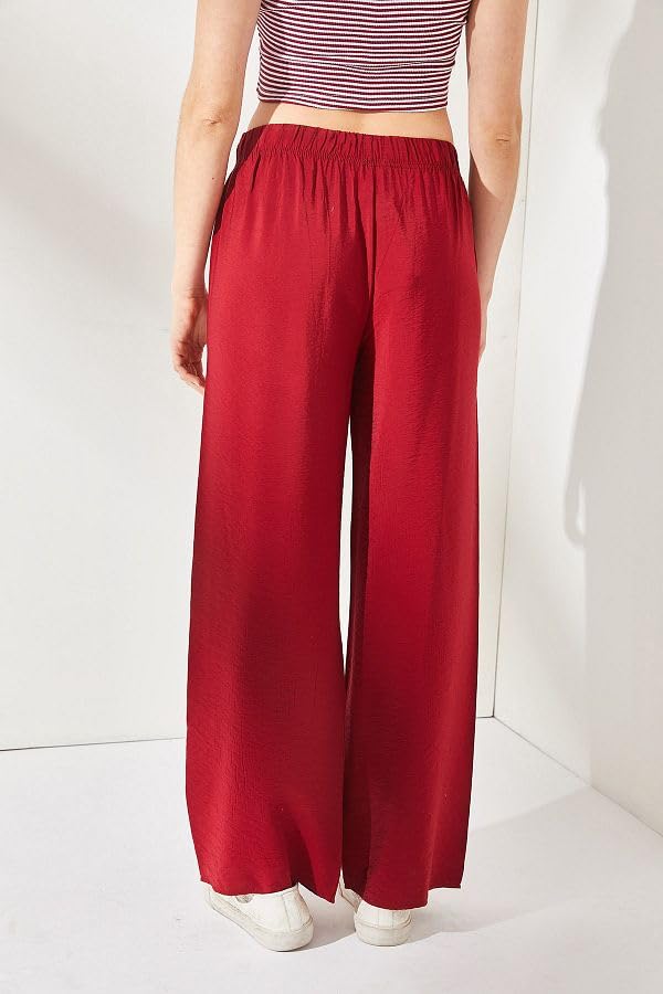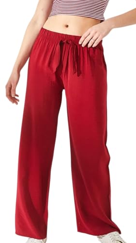 Generic - سروال بالازو بارجل واسعة للنساء، لون احمر، خصر مطاطي مع رباط، ملابس كاجوال للاسترخاء مقاس XL