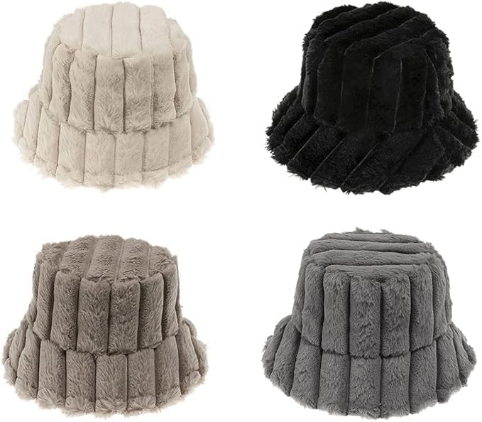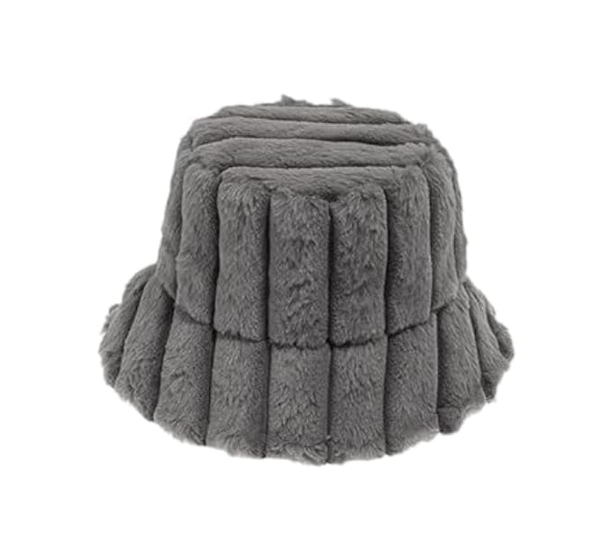 Generic - قبعة باكيت شتوية من الفرو المضلع، رمادي، دافئة وناعمة، للنساء