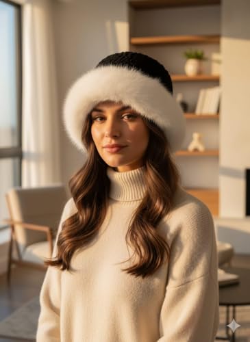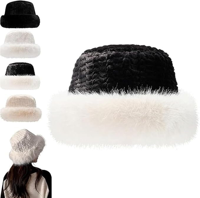 Generic - Women's Winter Faux Fur Hat, Knitted Beanie with Fluffy Trim, Warm Cold Weather Accessory