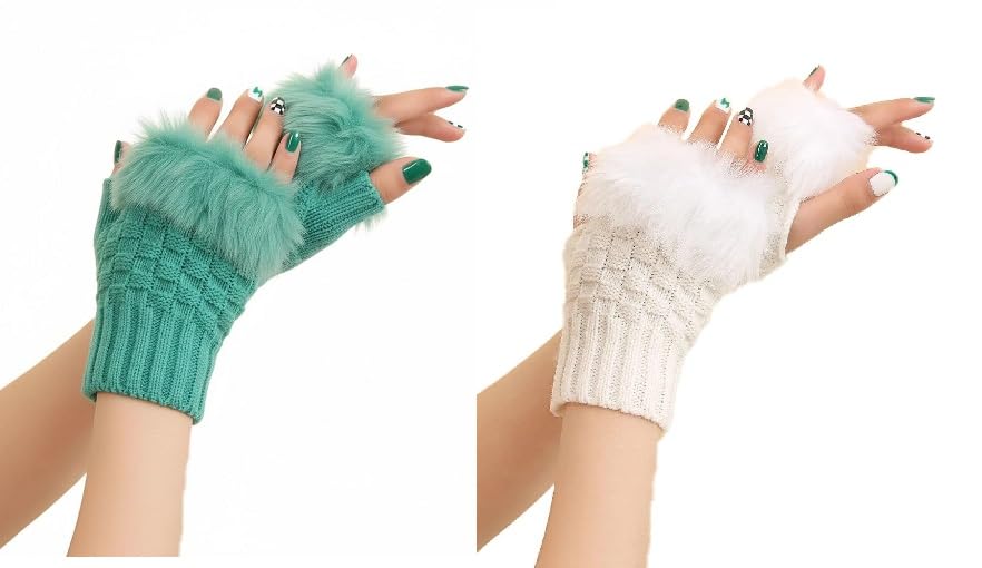 Generic - Women's Winter Fingerless Gloves with Thumb Hole - Soft Fur Knitted - Warm and Fashionable - 2 Count