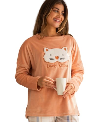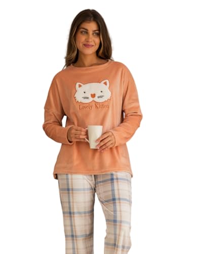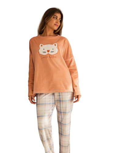 Generic - Women's Winter Velvet Logo T-Shirt and Checked Pants Pajama