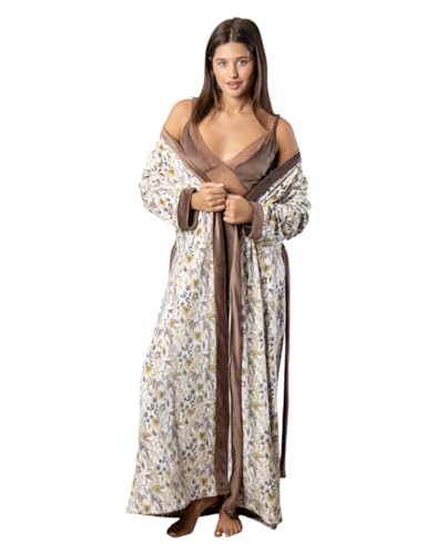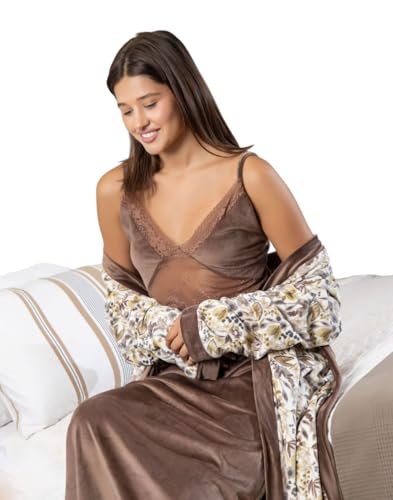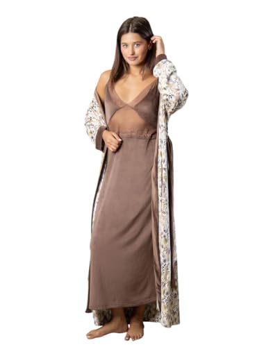 Generic - Women's Winter Velvet Long Shirt Chiffon Lace Long Robe Floral Print Shirt (Coffee, M)