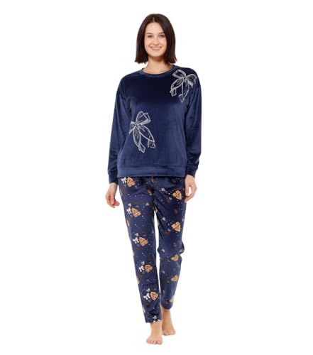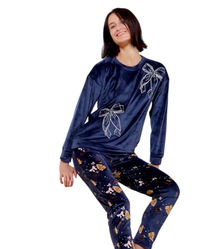 Generic - بيجامة شتوي قطيفة تيشيرت بنقشة فيونكة و بنطلون منقوش للنساء