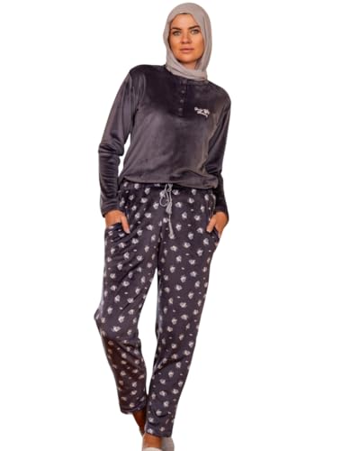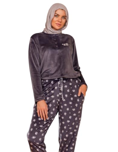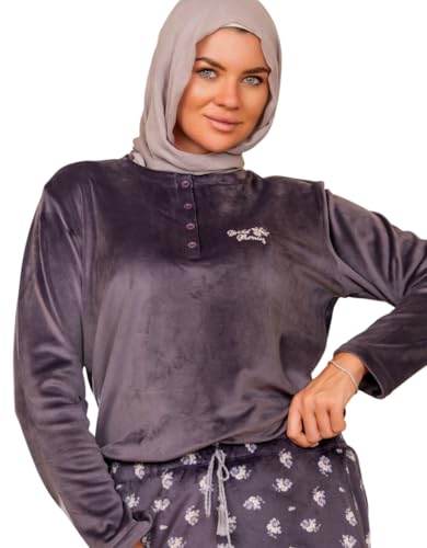 Generic - Women's Winter Velvet Pajama Button Logo T-shirt and Floral Pants with Pockets