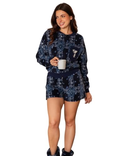 Generic - Women's Winter Velvet Pajama With Logo Zipper And Shorts And Patterned Cloak