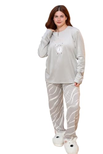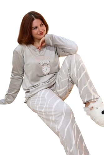 Generic - Women's Winter Velvet Pajamas Logo T-shirt and Plaid Pants (Beige Size)