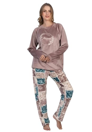 Generic - بيجامة شتوية قطيفة تيشيرت بتصميم شعار و بنطلون منقوش للنساء ( عادي و بيج سايز )