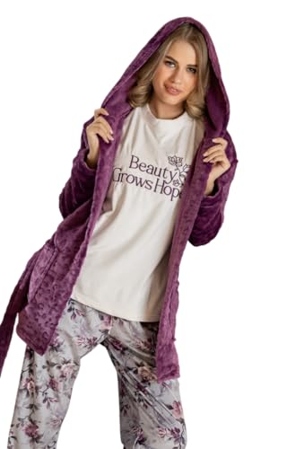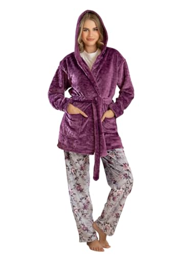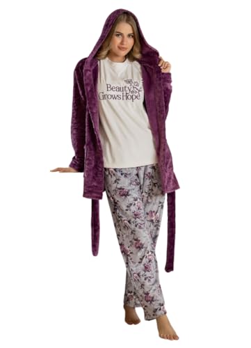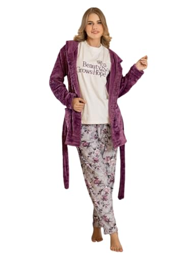 Generic - Women's Winter Velvet Pajamas Slogan Sleeve T-Shirt with Solid Short Pockets and Floral Pants
