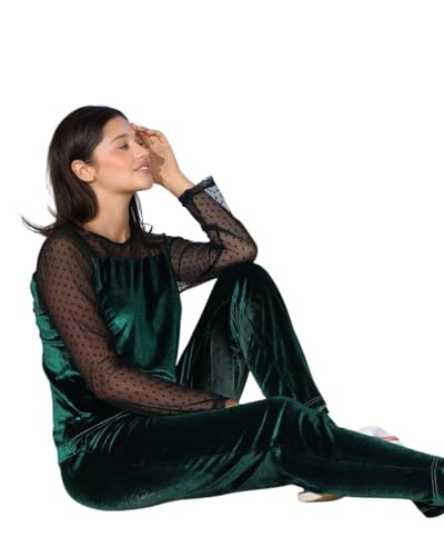 Generic - Women's Winter Velvet Pajamas Thin Inlaid Chiffon Sleeve Solid Pants