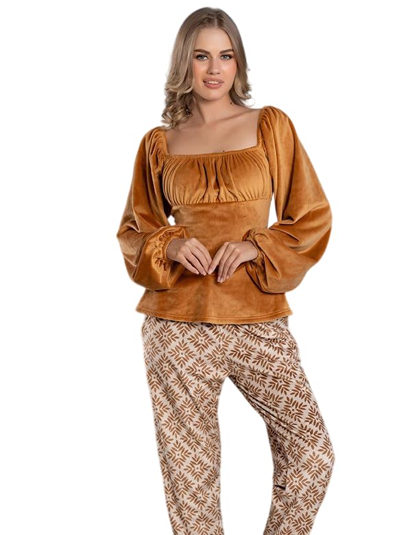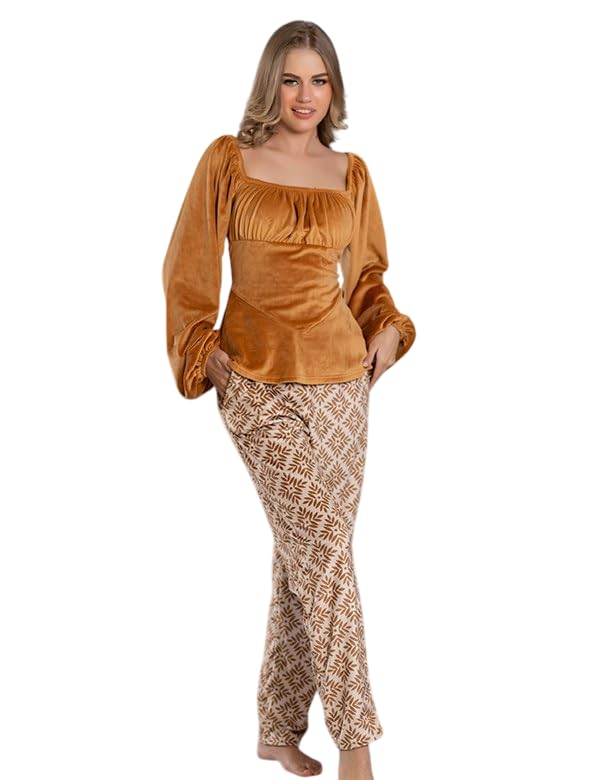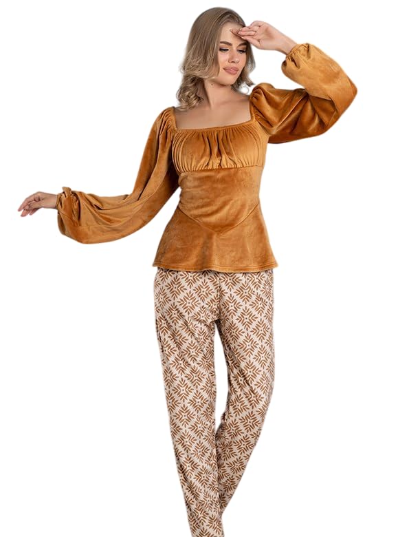 Generic - Women's Winter Velvet Pajamas Thin Wide Sleeve Blouse and Plaid Pocket Pants