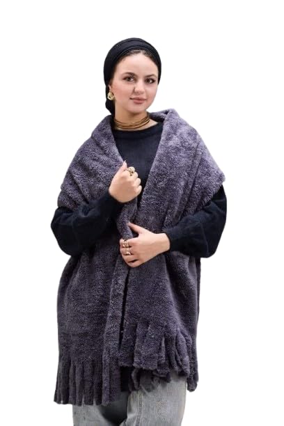 Generic - شال صوف للنساء، وشاح شتوي من القطن والصوف