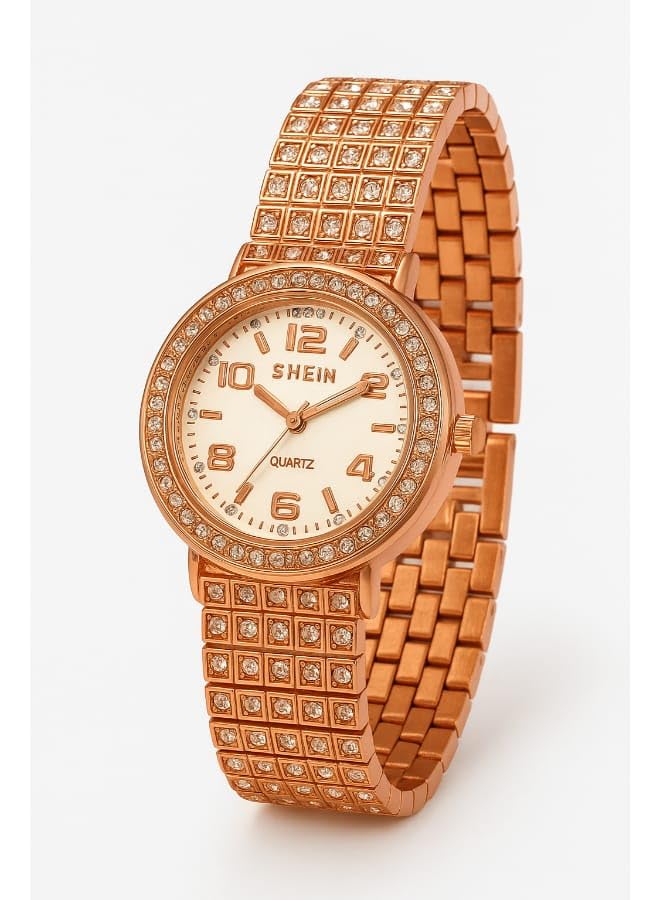 Generic - Women's Wrist Watch, Classic Gold, Plated Metal, Diameter 3.5 cm, Crystal Accents, Analog Dial, Adjustable Strap, Suitable for Formal Occasions