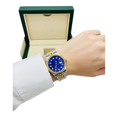 Generic - Women's Wrist Watch, Gold and Silver Metal Band, Blue Dial with Crystals, Gold Frame, with Box