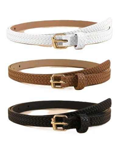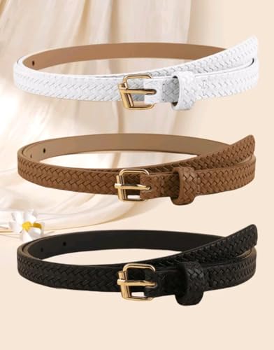 Generic - Women Slim Braided Belt Set Fashion Square Buckle Decorative Waist Belt Versatile Fashion