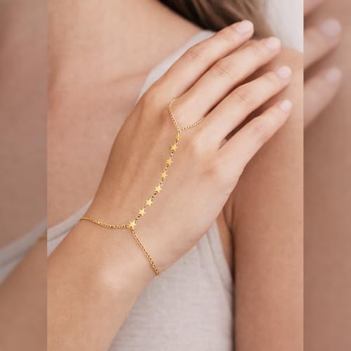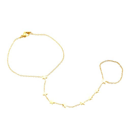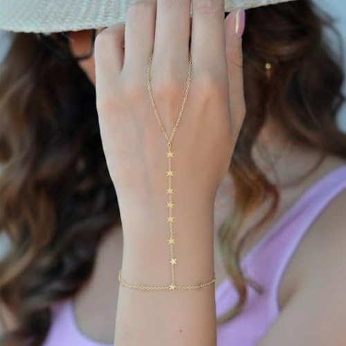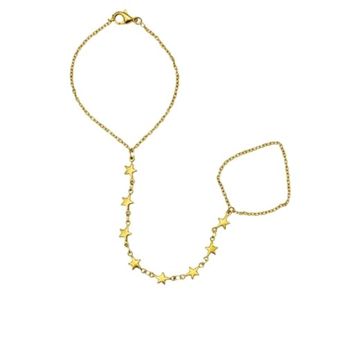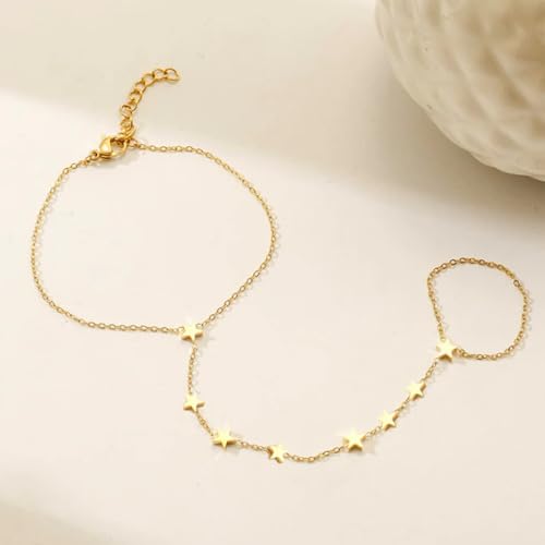 Generic - Women Stainless Steel Hand Chain Bracelet with Star Charms-Gold Tone Finger Ring Bracelet-Women Fashion jewellery Best Gift-