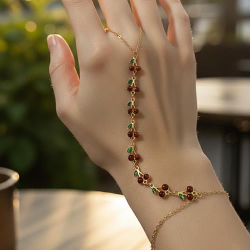 Generic - سلسلة يد للنساء من الستانلس ستيل مع تعليقة كرز - سوار سلسلة يد بلون ذهبي - افضل هدية للنساء