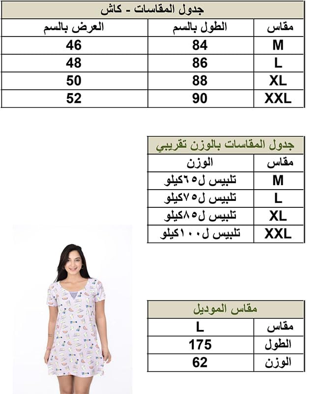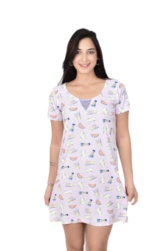 Generic - قميص نوم نسائي صيفي، نصف كم، تصميم بطبعة فواكه ومشروبات، لون بنفسجي، قطن ليكرا