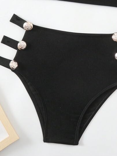 Generic - طقم بيكيني مثير مزين بازرار معدنية بلون سادة للنساء للسباحة والعطلات والصيف