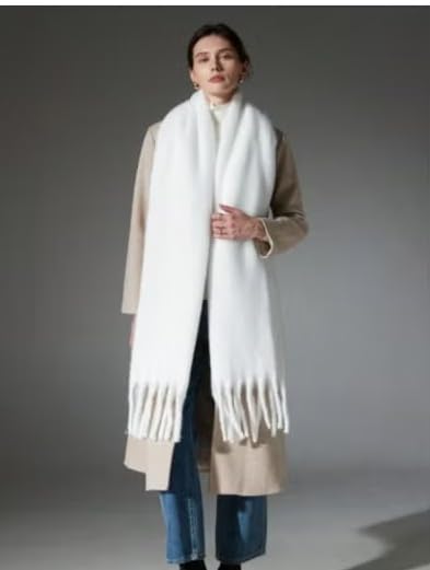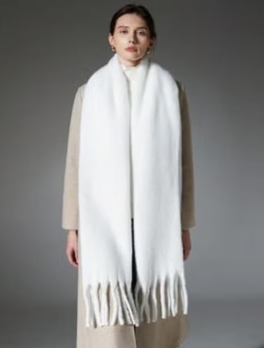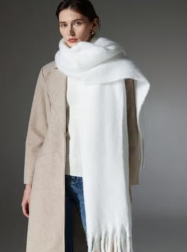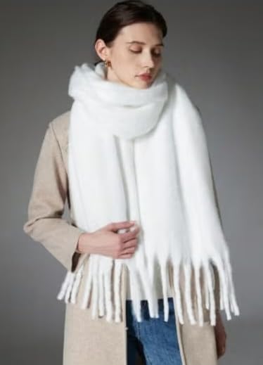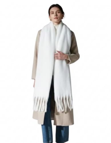 Generic - وشاح نسائي سميك بلون موحد بشراشيب – وشاح بطانية دافئ وناعم للأزواج، مناسب للاستخدام اليومي في الخريف والشتاء