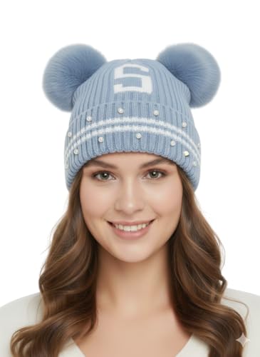 Generic - Women Winter Knitted Hat Warm Wide Flap Pom Pom Pom Hat Faux Fur Hat Multicolor