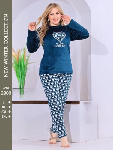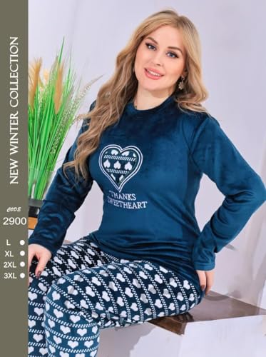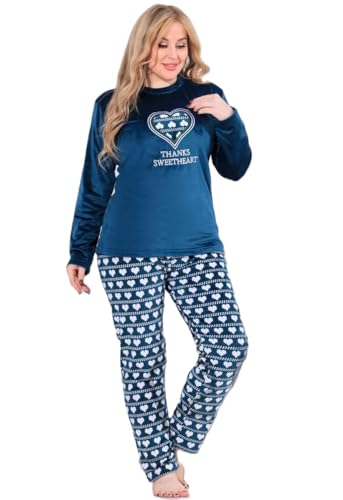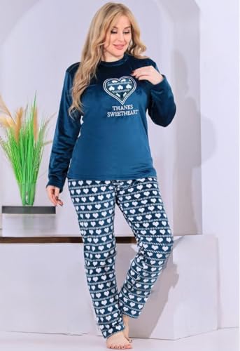 Generic - Women Winter Pajamas - 2 Piece Plaid Pants and T-Shirt Embroidery Velvet Pajama Set Warm and Comfortable Home Sleep Set