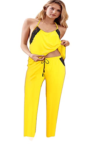 Generic - Womens Cotton Pajama Pants Top Cut Yellow Black