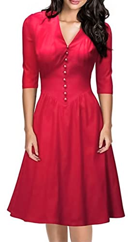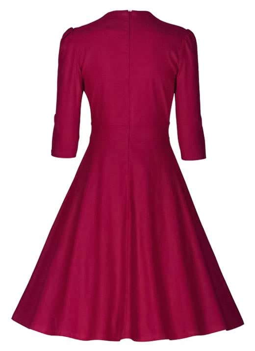 Generic - فستان نسائى احمر فوشيا مزين بزراير دهبي